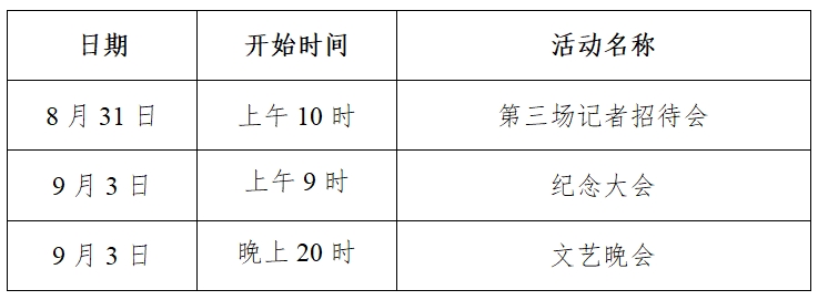 8月31日至9月3日,新闻中心为境内外媒体提供公共信号技术服务的场次: