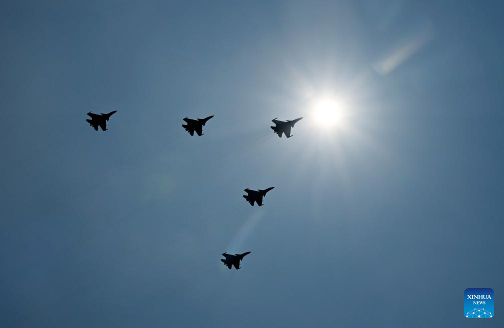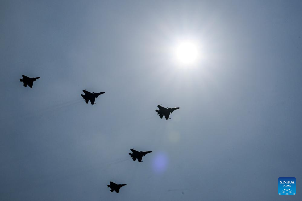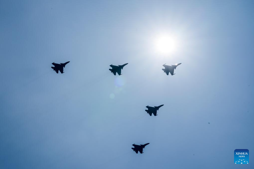 The echelon of aircraft carrier-based fighter jets attends a military parade in Beijing, capital of China, Sept. 3, 2025. China on Wednesday held a grand gathering to commemorate the 80th anniversary of the victory in the Chinese People's War of Resistance against Japanese Aggression and the World Anti-Fascist War. (Xinhua/Li Jianan)