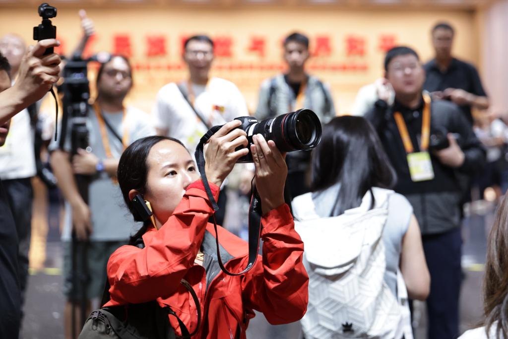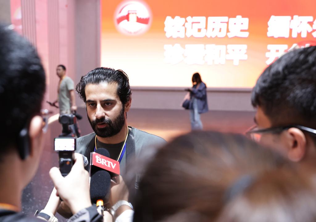 8月27日,一名来自巴基斯坦的记者在活动上接受采访。