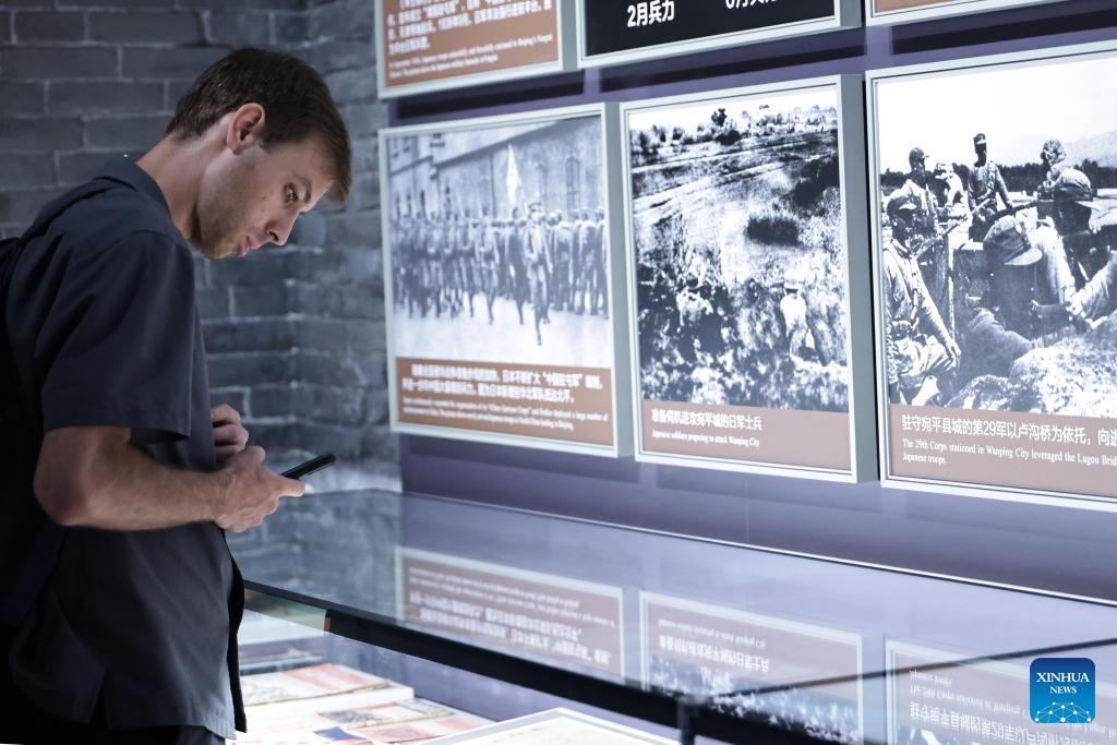 A journalist visits the Museum of the War of Chinese People's Resistance Against Japanese Aggression in Beijing, capital of China, Aug. 27, 2025. Nearly 200 journalists went to the Museum of the War of Chinese People's Resistance Against Japanese Aggression for visits and interviews on Wednesday.