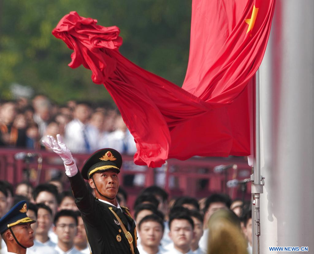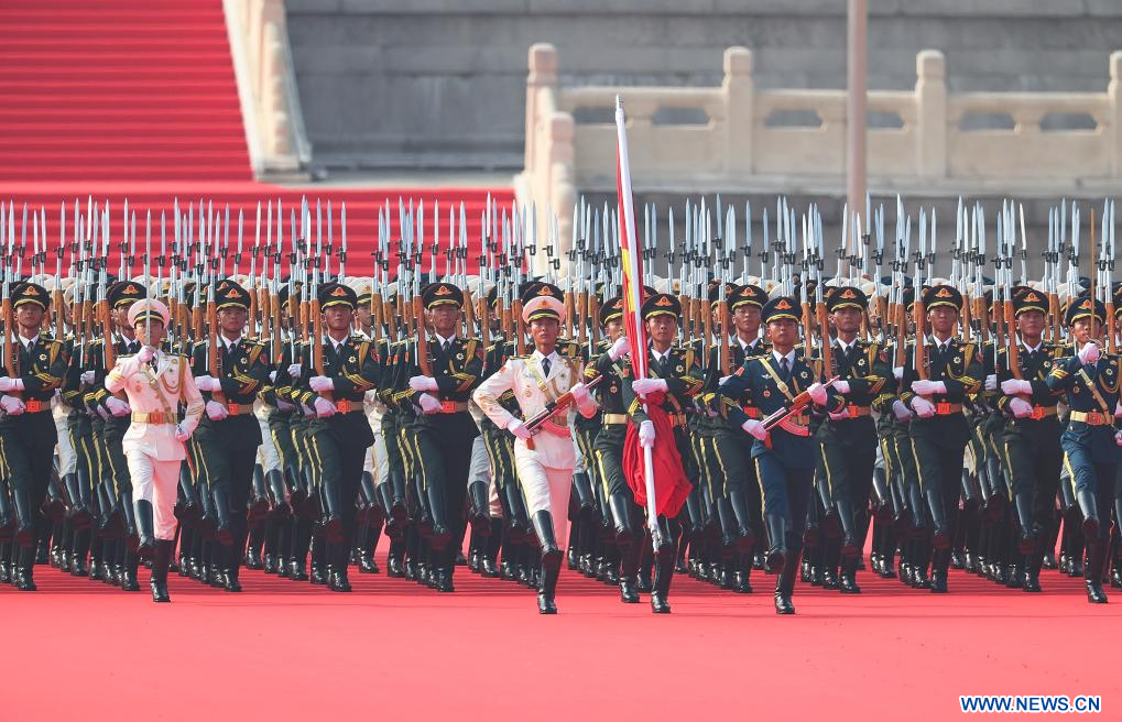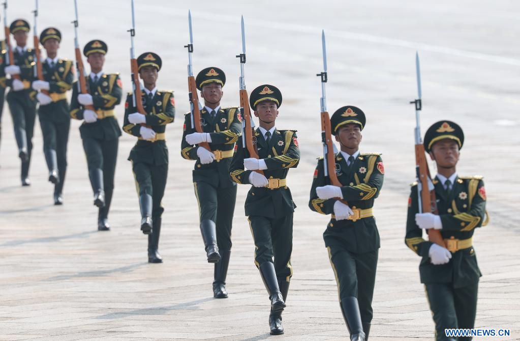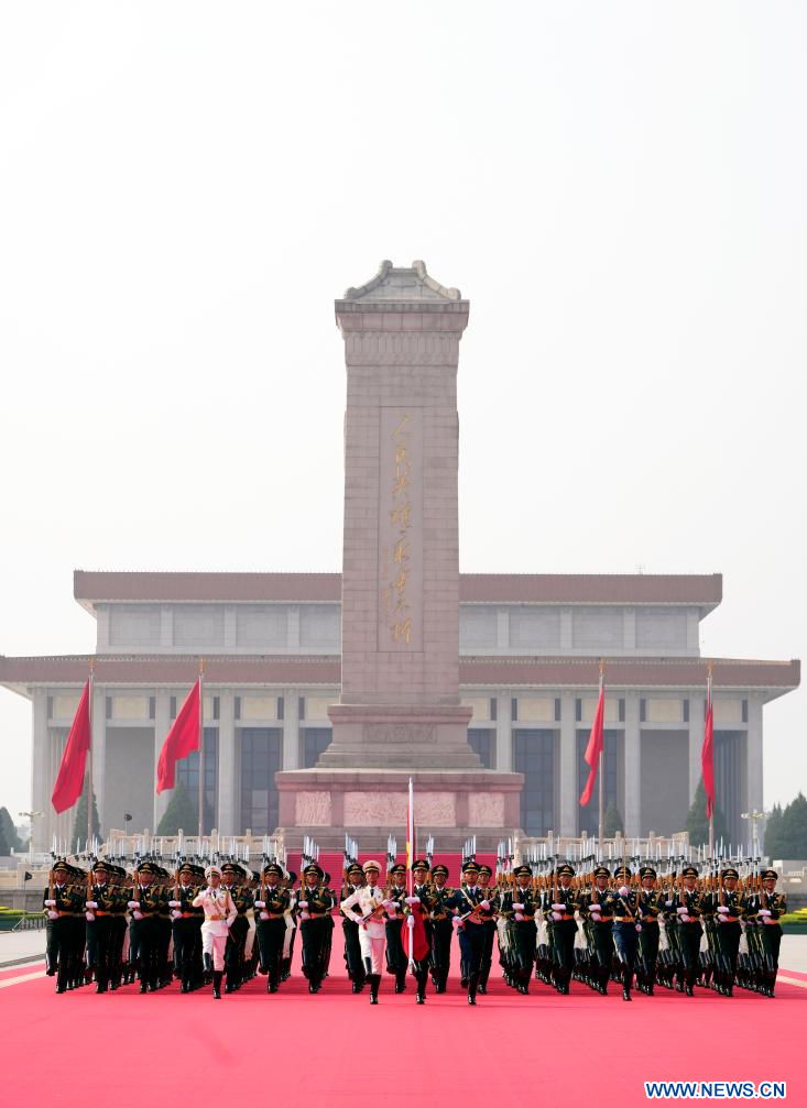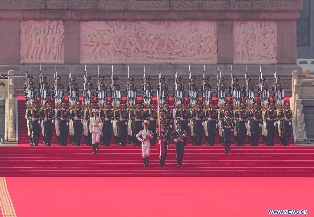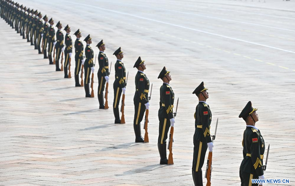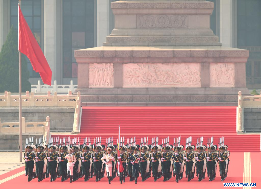 BEIJING, 3 septembre (Xinhua) -- Une grande cérémonie commémorative a commencé mercredi matin sur la place Tian'anmen à Beijing pour marquer le 80e anniversaire de la victoire de la Guerre de résistance du peuple chinois contre l'agression japonaise et de la Guerre mondiale antifasciste.