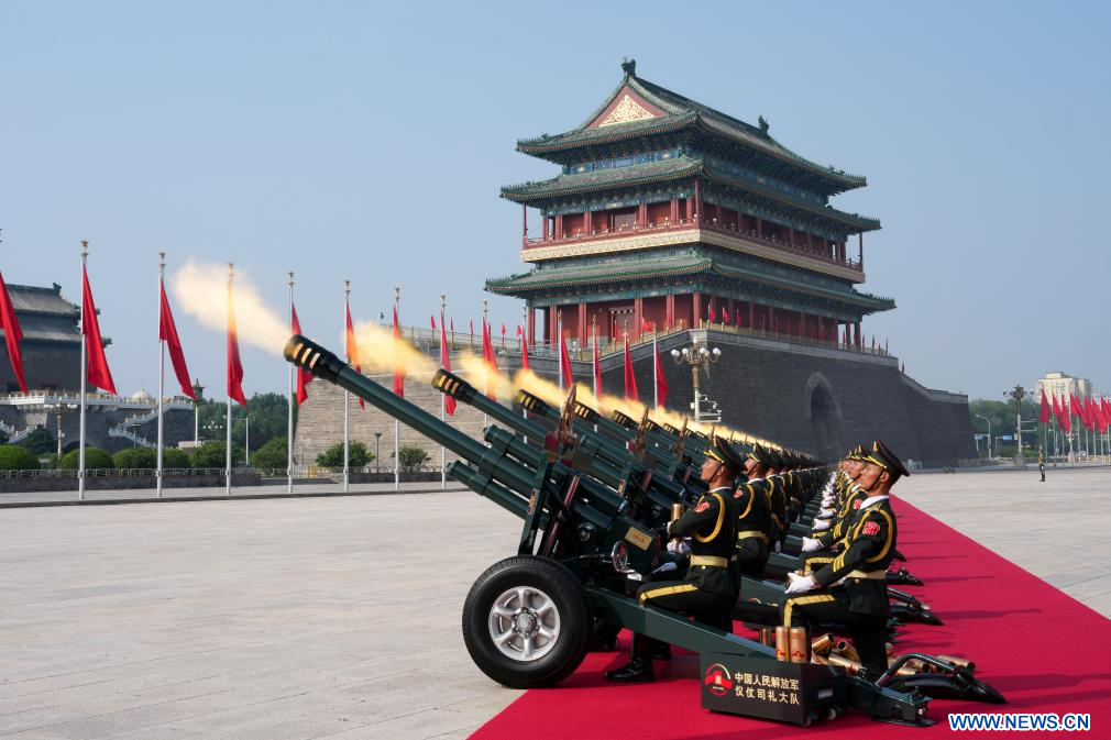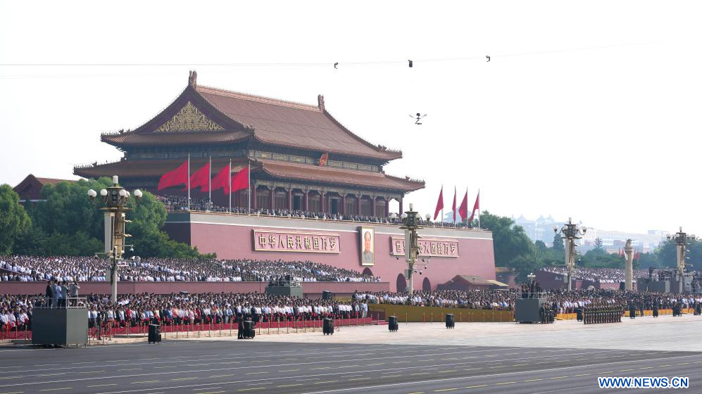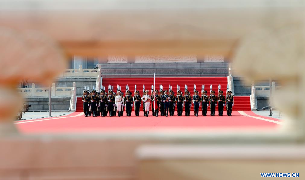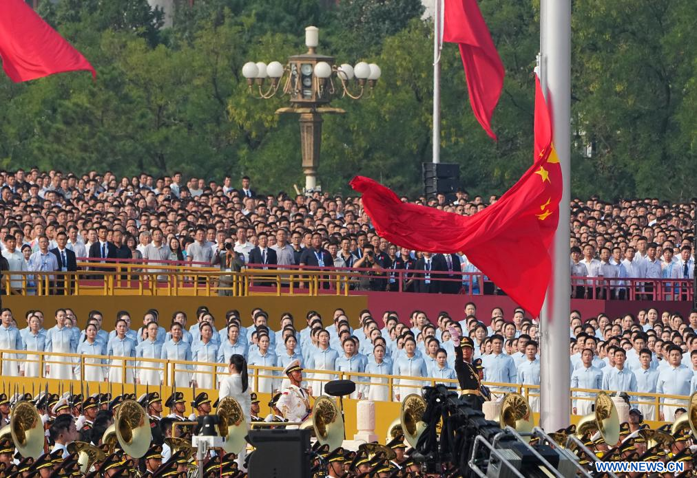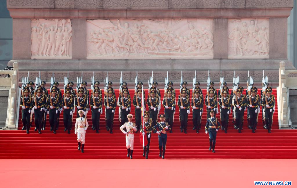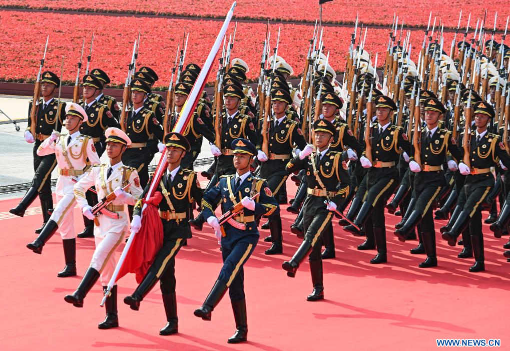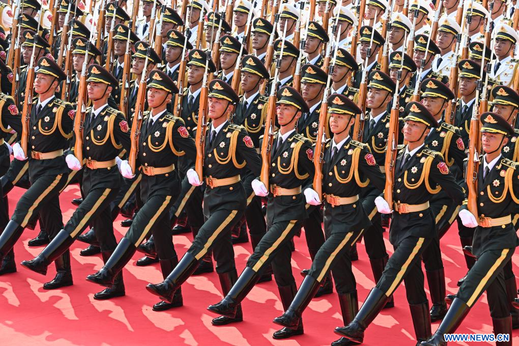BEIJING, 3 septembre (Xinhua) -- Une grande cérémonie commémorative a commencé mercredi matin sur la place Tian'anmen à Beijing pour marquer le 80e anniversaire de la victoire de la Guerre de résistance du peuple chinois contre l'agression japonaise et de la Guerre mondiale antifasciste.