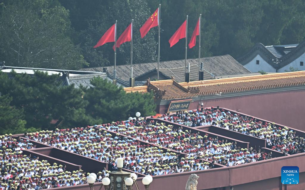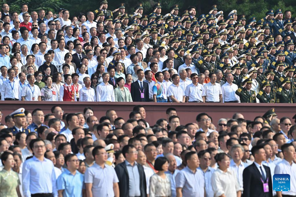 A grand gathering to commemorate the 80th anniversary of the victory in the Chinese People's War of Resistance against Japanese Aggression and the World Anti-Fascist War is held in Beijing, capital of China, Sept. 3, 2025. (Xinhua/Li Xiang)
