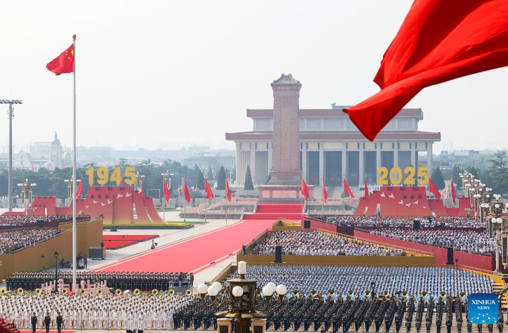 A grand gathering to commemorate the 80th anniversary of the victory in the Chinese People's War of Resistance against Japanese Aggression and the World Anti-Fascist War starts at Tian'anmen Square in Beijing, capital of China, Sept. 3, 2025. (Xinhua/Zhu Zheng)