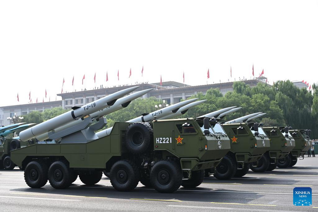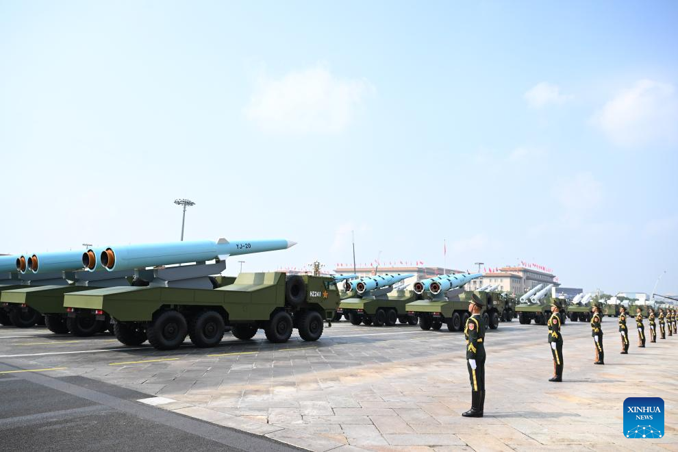 The anti-ship missile formation attends a military parade in Beijing, capital of China, Sept. 3, 2025. China on Wednesday held a grand gathering to commemorate the 80th anniversary of the victory in the Chinese People's War of Resistance against Japanese Aggression and the World Anti-Fascist War. (Xinhua/Ju Huanzong)