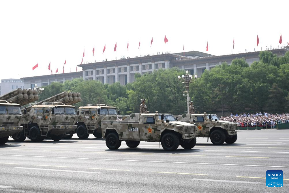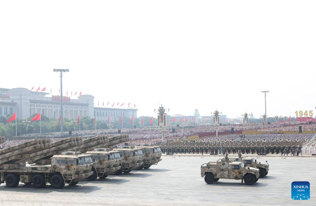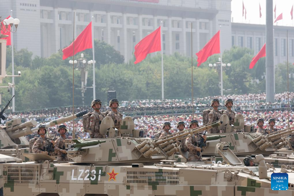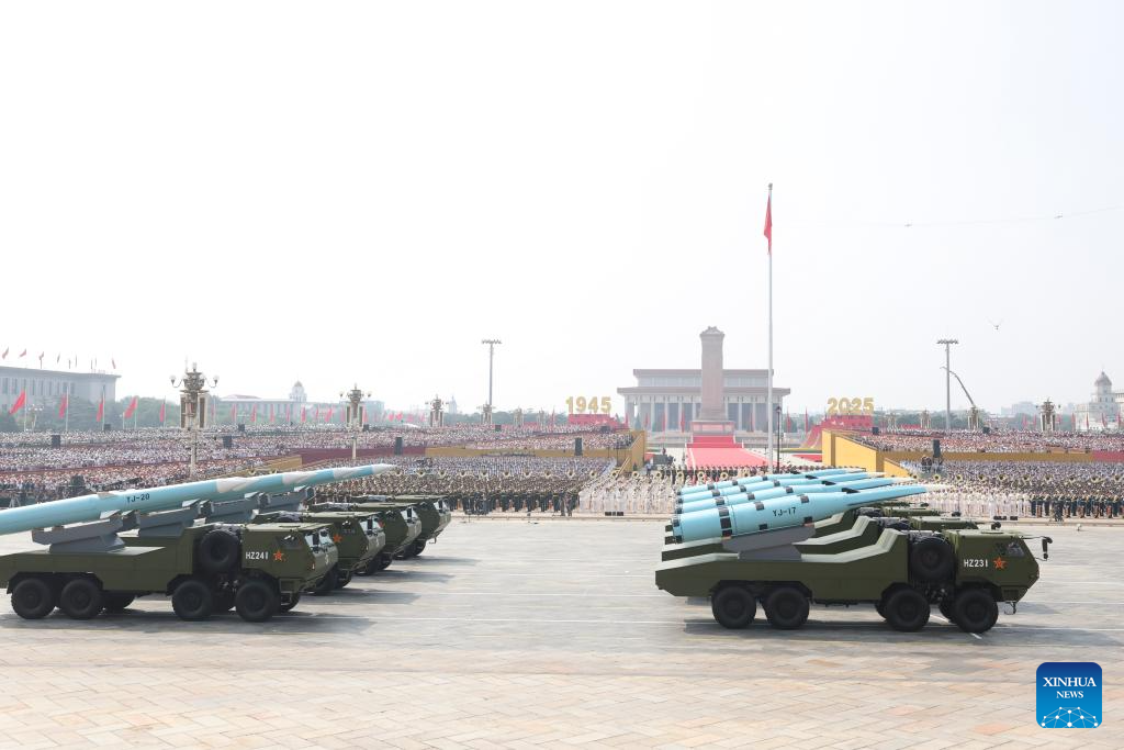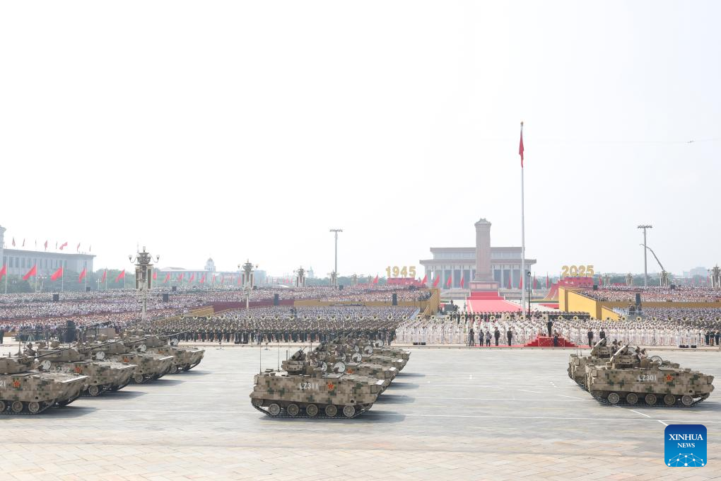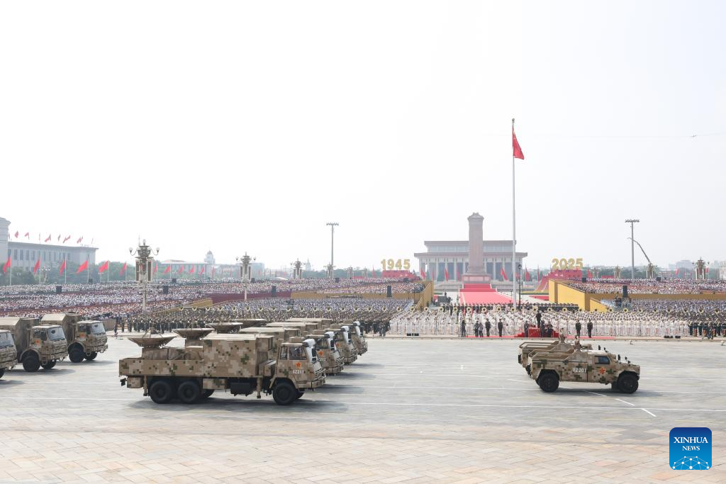 Armament formations attend a parade in Beijing, capital of China, Sept. 3, 2025. China on Wednesday held a grand gathering to commemorate the 80th anniversary of the victory in the Chinese People's War of Resistance against Japanese Aggression and the World Anti-Fascist War. (Xinhua/Liu Xu)