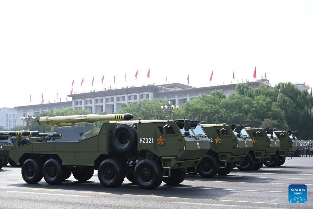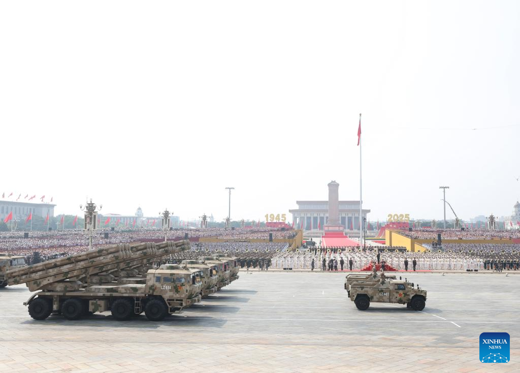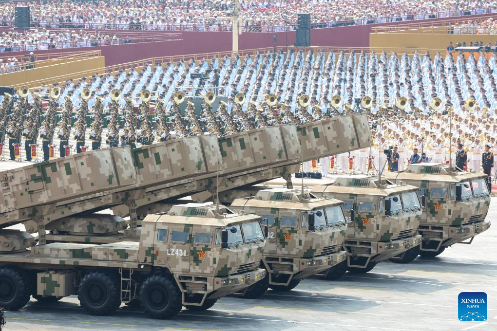 The long-range artillery formation attends a military parade in Beijing, capital of China, Sept. 3, 2025. China on Wednesday held a grand gathering to commemorate the 80th anniversary of the victory in the Chinese People's War of Resistance against Japanese Aggression and the World Anti-Fascist War. (Xinhua/Xiong Qi)
