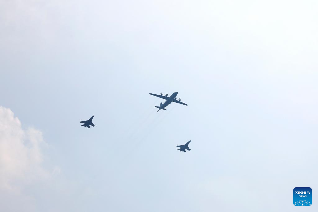 An air echelon attends a parade in Beijing, capital of China, Sept. 3, 2025. China on Wednesday held a grand gathering to commemorate the 80th anniversary of the victory in the Chinese People's War of Resistance against Japanese Aggression and the World Anti-Fascist War. (Xinhua/Xiao Yijiu)