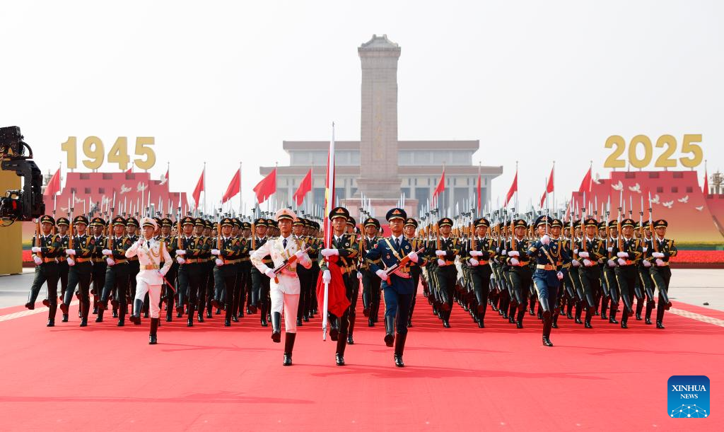 The guard of honor of the Chinese People's Liberation Army (PLA) attends a parade in Beijing, capital of China, Sept. 3, 2025. China on Wednesday held a grand gathering to commemorate the 80th anniversary of the victory in the Chinese People's War of Resistance against Japanese Aggression and the World Anti-Fascist War. (Xinhua/Wang Jianhua)
