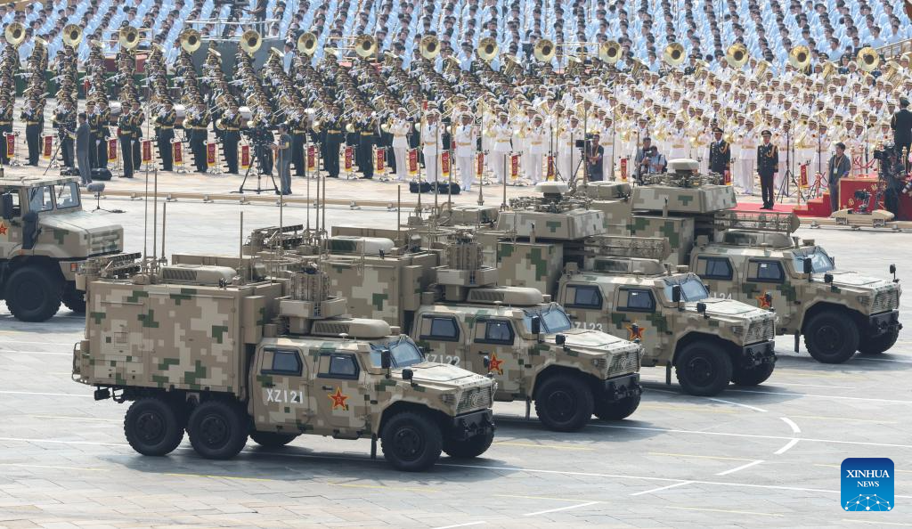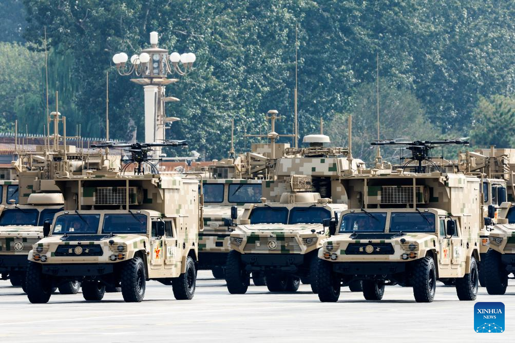 The electronic countermeasures formation attends a military parade in Beijing, capital of China, Sept. 3, 2025. China on Wednesday held a grand gathering to commemorate the 80th anniversary of the victory in the Chinese People's War of Resistance against Japanese Aggression and the World Anti-Fascist War. (Xinhua/Hu Huhu)