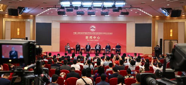 Press center for China's V-Day commemorations holds group interview in Beijing